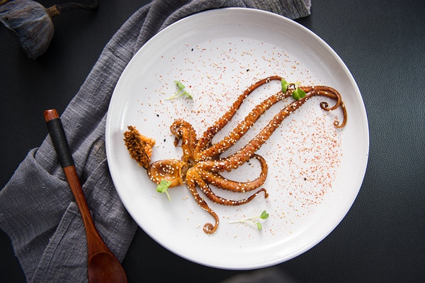 在媒体体验会上,京旬也向媒体朋友们展示它的独特魅力,诸多精品主打料理如柚香蒸煮虾芋和黑金鲍鱼、配比油爆阿根廷红虾佐柚子胡椒盐、卡门起司焗温泉蛋配黑鱼子酱、稠米酒酿焗银鳕鱼佐红紫苏岩盐、焗烤意式小土豆配生云丹红鱼籽酱、鳕鱼星鳗花椒芽天妇罗、云南黑松露白子烧、鹅肝波特小牛肉佐海苔酱配金钱蒜&鳄梨等让人从视觉、味觉的审美体验上,通过食物本身传递出令人愉悦、不断回味的不凡感受。