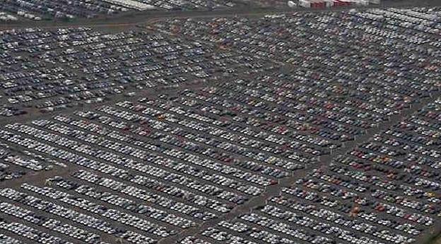 新车一排排堆放在空地上,过了大半年无人问津,没开过就等报废了