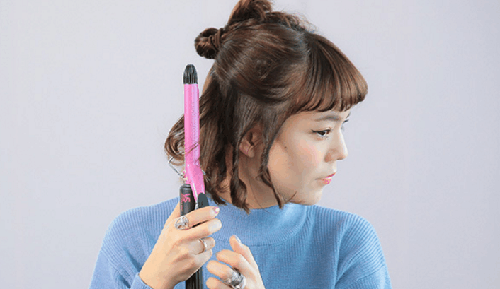 平常是齐刘海的小仙女们,用加热好的卷发棒将刘海也稍微卷一下,让发型更有整体感,也更显俏丽。