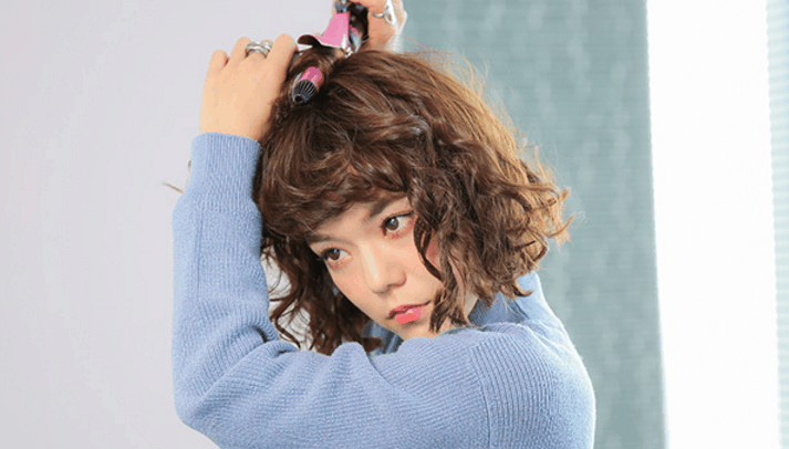 最后用手指将卷好的头发梳开,喷上适量的定型喷雾,使卷发有更自然蓬松的弯曲弧度,也能更长时间定型。